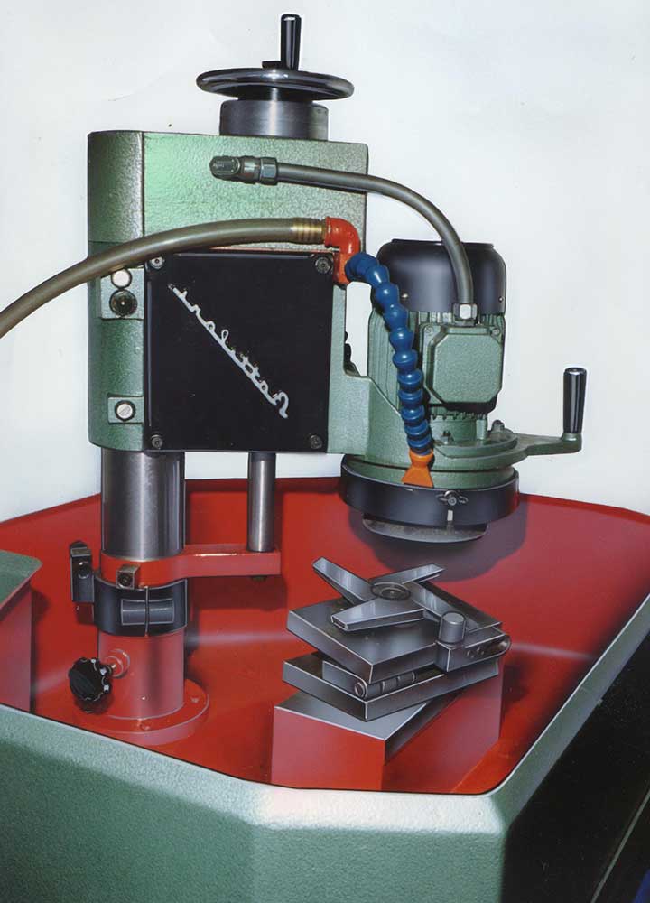 La rettificatrice per piani che illustriamo in questo catalogo, presenta una robusta struttura a una colonna mobile in acciaio, imperniata sul basamento mediante cuscinetti a sfere di grandi dimensioni e dotata superiormente di supporto con movimento a bagno d’olio.